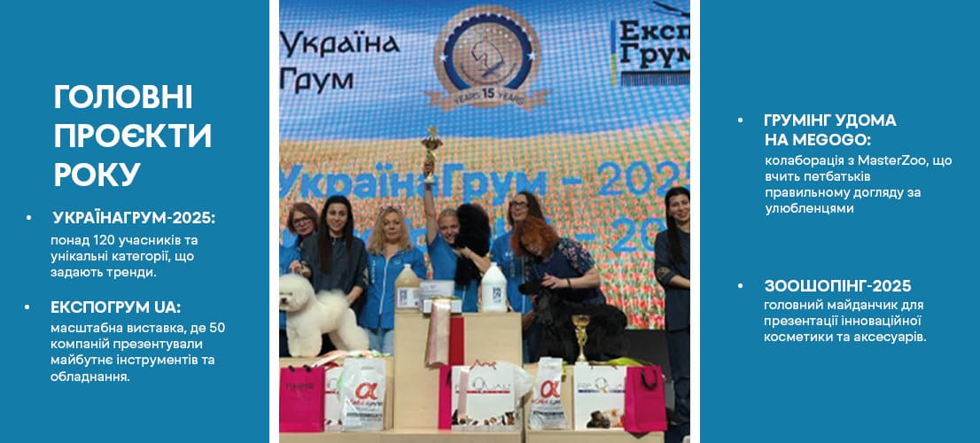 ✧ 15+ грантів, наданих грумерам для професійного розвитку;